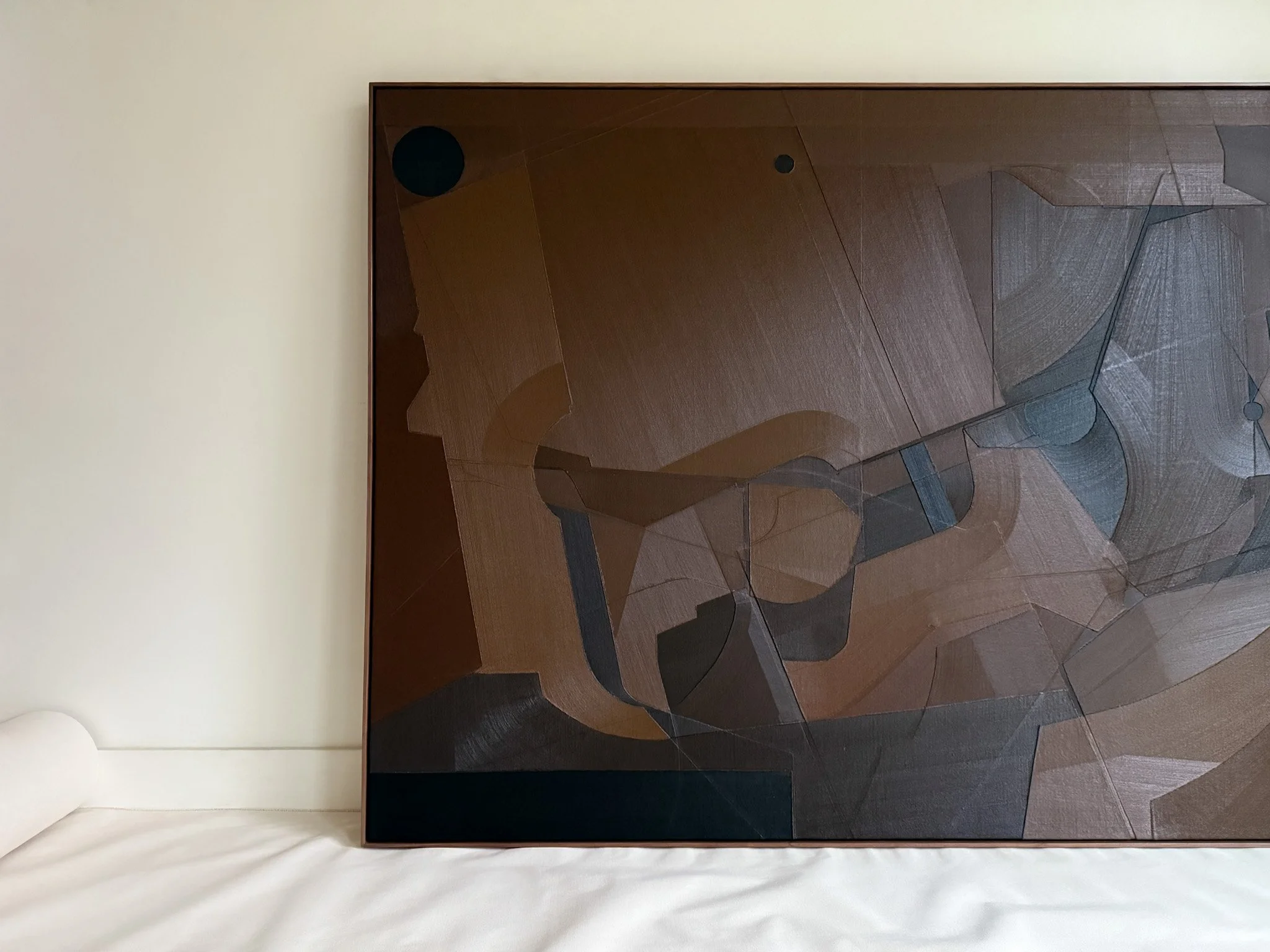 abstract duck cloth collage oil painting