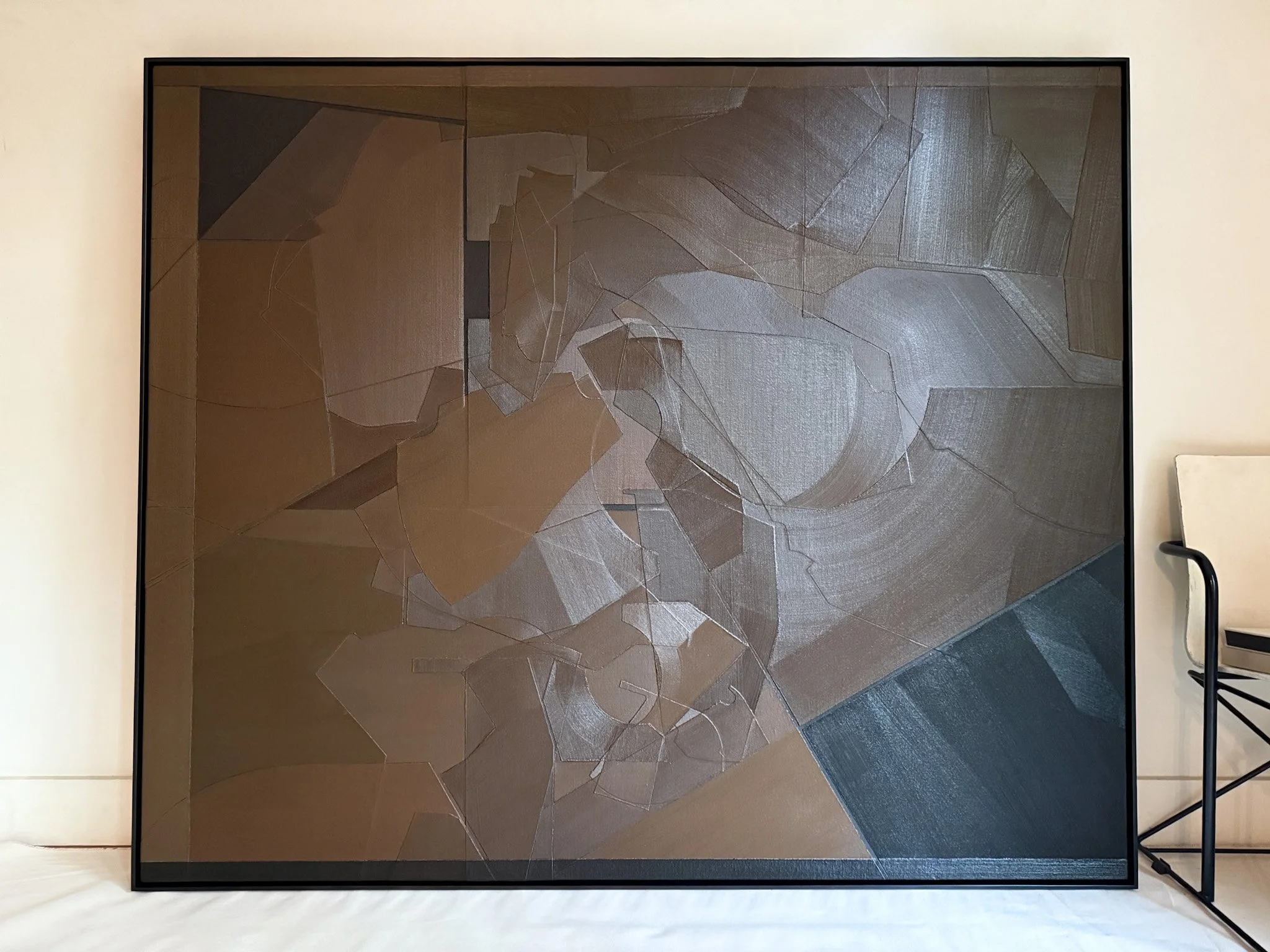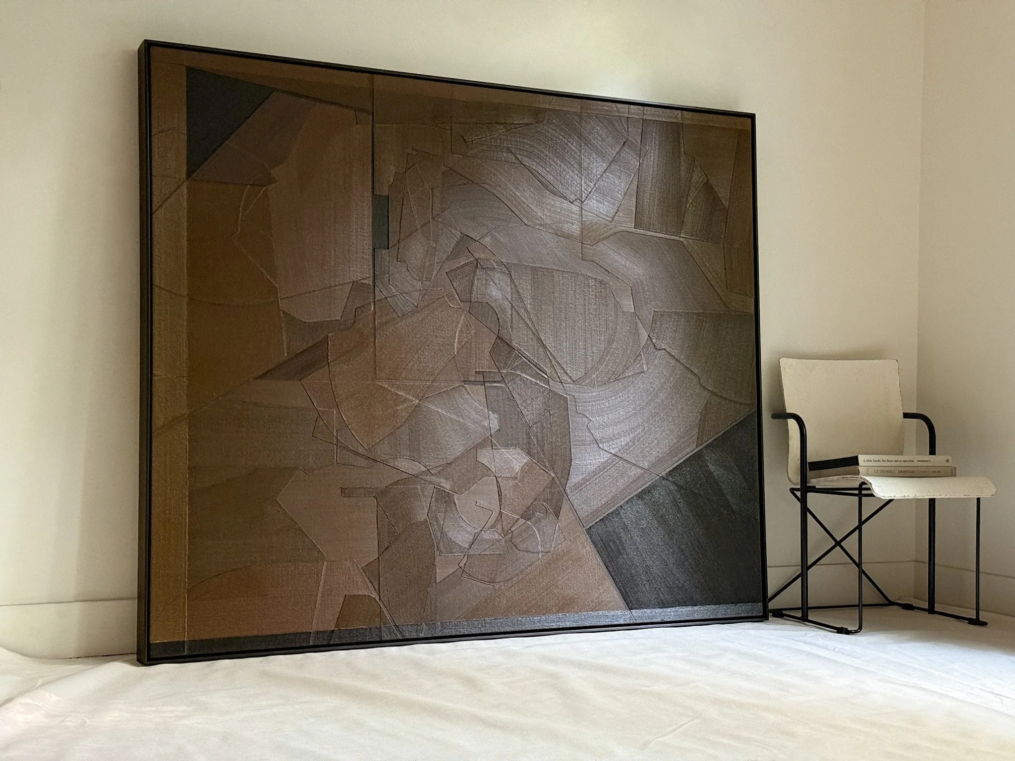 Abstract duck cloth collage oil painting