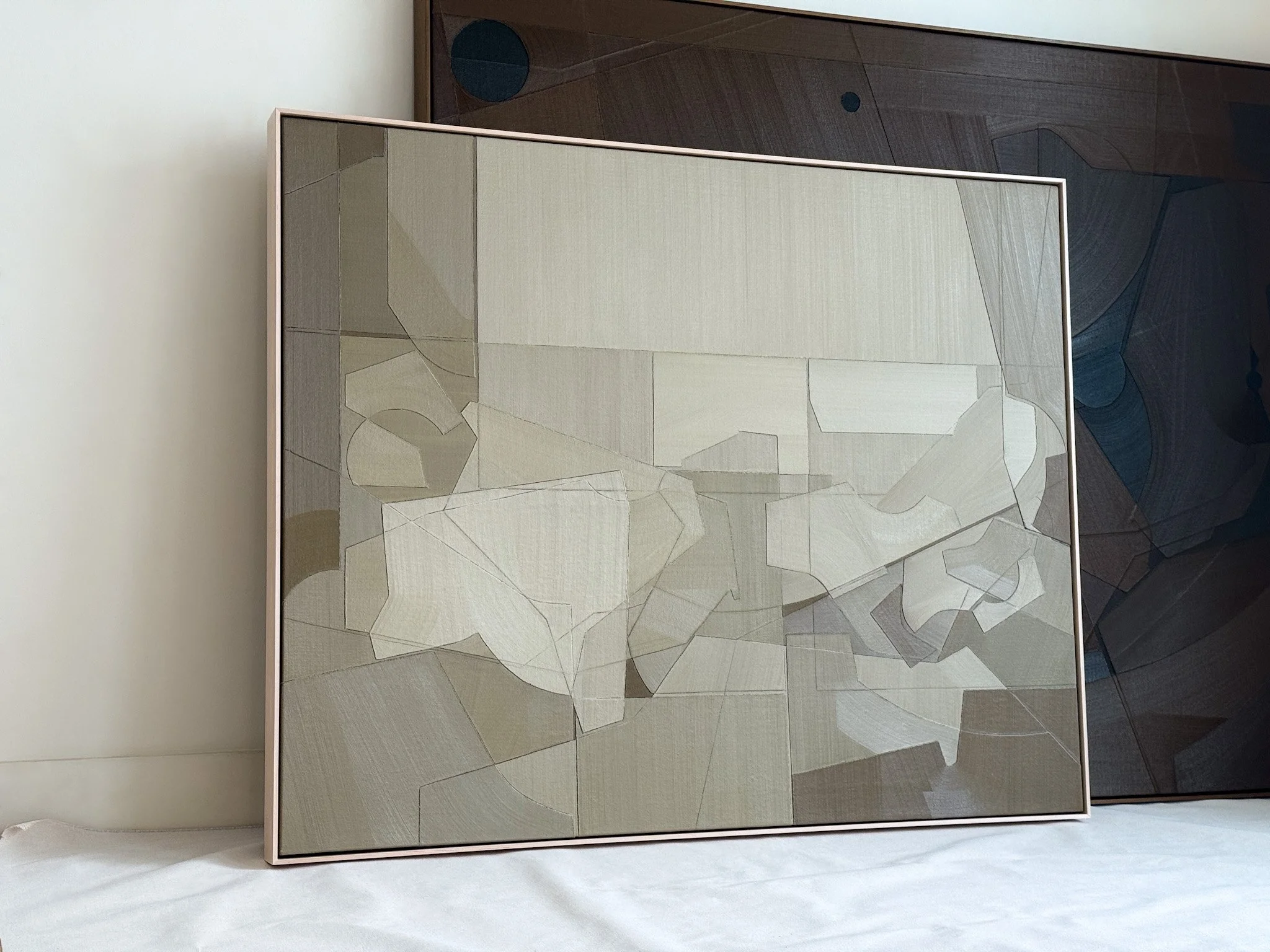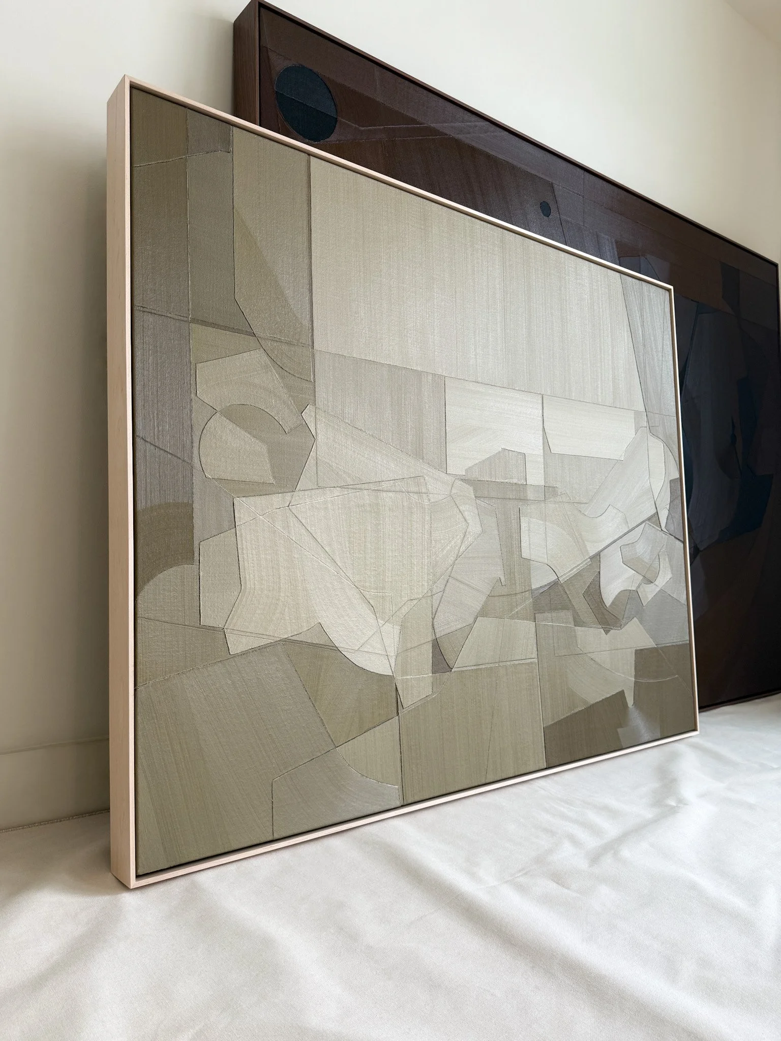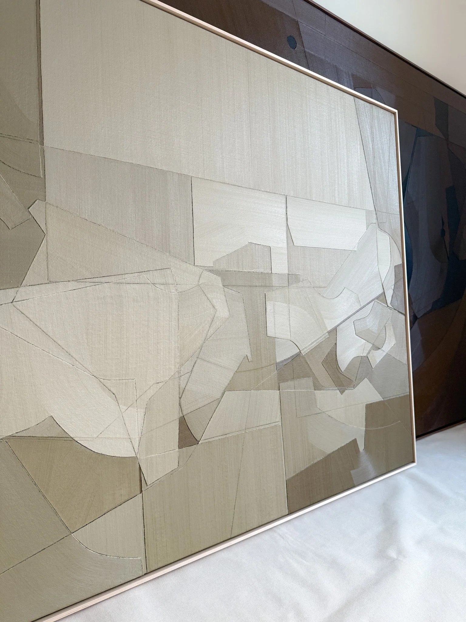 Abstract duck cloth collage oil painting